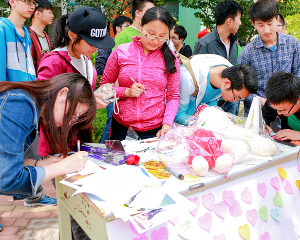 此次活动设有真情表白、音乐互动等项目,过往学生们踊跃参与。活动参与者们在“感恩宣言”白板上签字,并写下自己的感恩计划,表明自己想为他/她做的事。在免费提供的明信片上,参与者们写上感恩或表白的话语,电气1班的活动负责人将在活动过后,将这些明信片一一贴上邮票寄出。活动中,校民乐团的成员献上古筝弹奏等精彩演出,吸引了过往学生的兴趣。活动还设置了抽奖活动,备有丰厚礼品,并最终花落赢家手中。