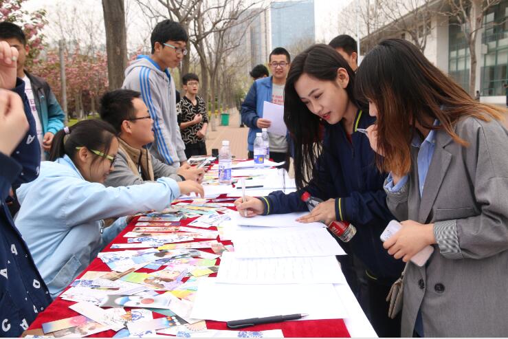 4月26日,为了响应习总书记在文艺工作者座谈会上提出的繁荣文艺创作、推动文艺创新的号召,自动化1501班举行了“古诗韵,读书情”世界读书日主题团日活动。活动以填古诗送书签的方式向大家展示古代诗词的魅力。活动当天,自动化1501班同学邀请过往的大学生参与填诗活动。由于诗词并不常用于日常生活当中,一些参与同学只能口头说出诗词的大概内容。“故园东望路漫漫,双袖龙钟……”一个同学努力的回忆着,面对各式各样精美的奖品,这位同学始终不肯放弃,最终还是未能写出正确答案。作为鼓励,自动化1501班夏斯港仍然赠送了这位同学一枚精美的青花瓷书签,这位同学拿着书签不禁慨叹,自己以后要多学习中国文学。活动还设有趣味书法比赛,或方或斜的毛笔字,透露出每一位参赛同学对中国文学的热爱。活动中,同学们还纷纷与由自动化1501同学扮演的古装诗人合影留念。