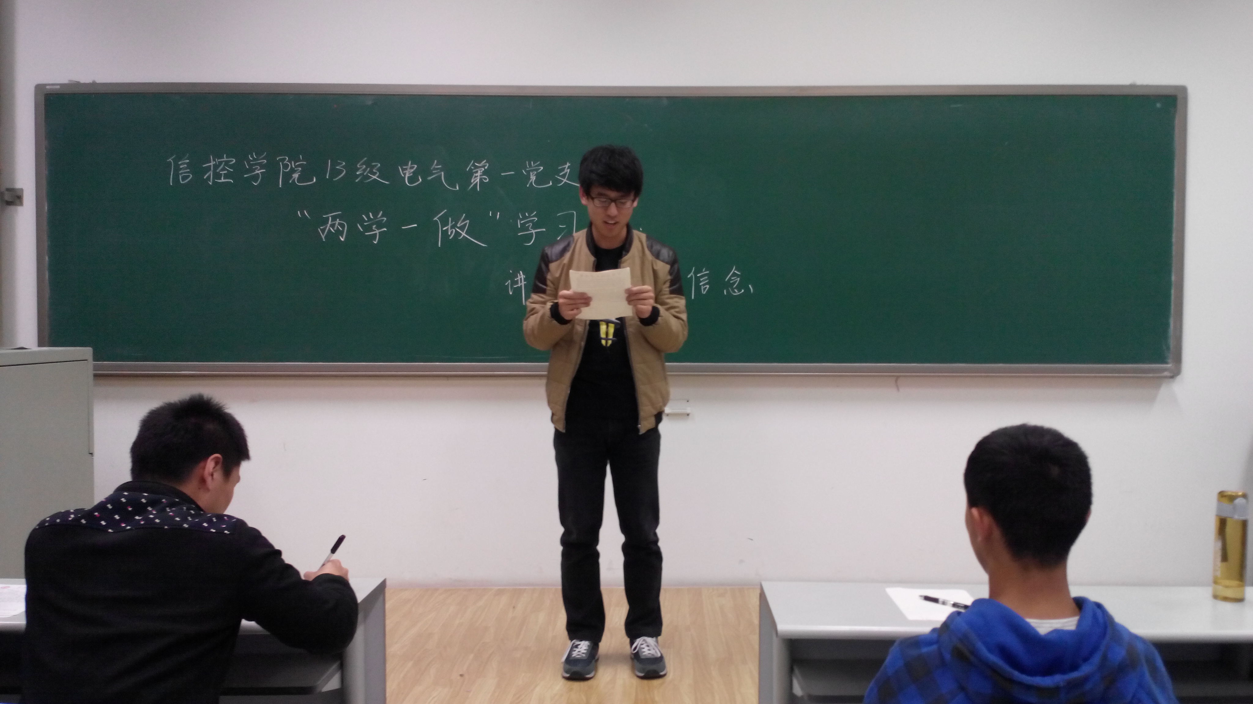 开展“两学一做”学习教育,是落实党章关于加强党员教育管理要求,是面向全体党员深化党内教育的重要实践。据悉,2013级电气第一党支部将继续开展“两学一做”学习会,加强党员的党性意识与责任意识。【审核:王宁】