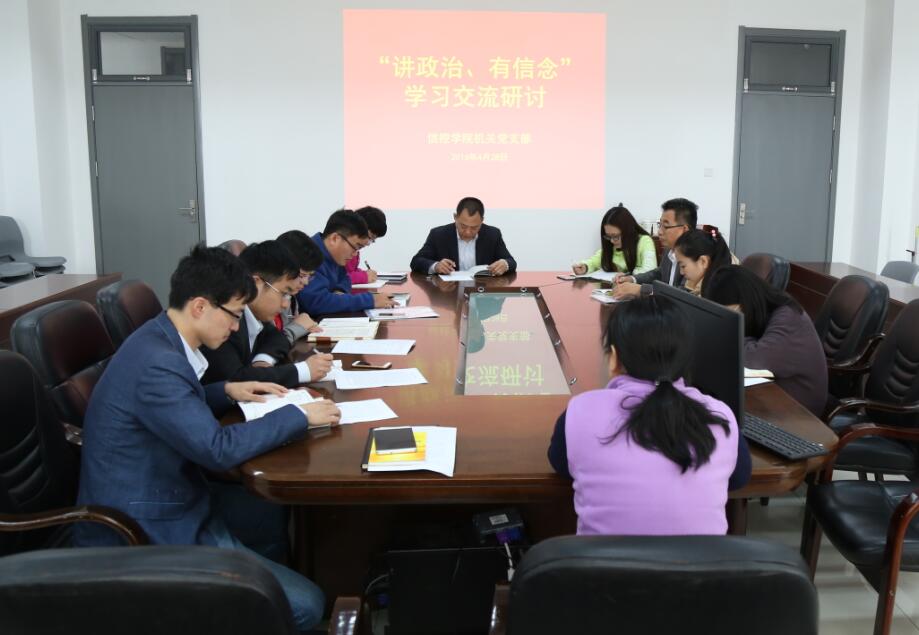 4月28日上午,我院机关党支部在工科楼E1325会议室召开“讲政治,有信念”学习交流研讨会,集体汇报交流“两学一做”教育活动开展以来的心得体会。会议由机关党支部书记赵小明主持,学院党委书记方召杰、党委副书记付罡、副院长赵青等机关党支部党员参加了会议。