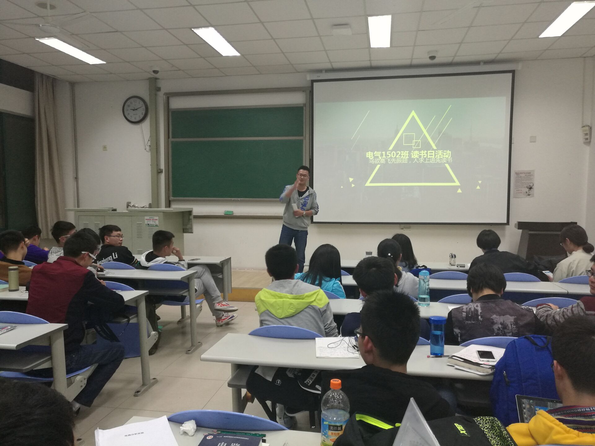 本着令每个同学积极参与的原则,班委团决定采取上一同学指定的规则,使每个同学都有上台交流的可能性。“大家成长过程中想必都有对自己影响比较大的书籍,大家积极上台交流一下……”活动伊始班长魏傲动员说道。同时他也从自身讲起,对《百年孤独》这本书侃侃而谈,赢得了同学们的掌声。同学们在活动期间对于自己推荐的书目都进行了细致的解析,还有同学为了活跃气氛推荐了高数辅导和网络小说,引来笑声一片。电气1502班谢嘉雯说:“这次交流会让我了解到之前没有接触过的书,以后一定要尝试一下,交流的同学也非常有感染力,气氛很好。”