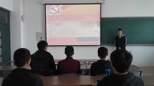 3月19日,我院2013级电气第一党支部于南堂312召开本支部第一次支部会议暨“两会”知识学习活动。会议由党支部书记赵振东主持,支部全体成员参加。