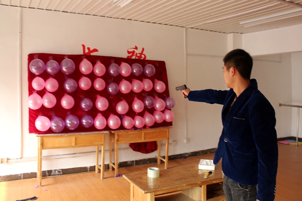 活动开始前,院学生会从各个班级处收集了女生们的心愿.并放入气球中。活动采用趣味射击的形式,气球中装有心愿条或奖品条,每位参与者有一次射击机会,获得心愿条则需帮助女生实现心愿,获得奖品条则可赢取响应奖品。一名男生在打爆气球后,看到纸条上写着:“我想要一个可爱玩具熊”。现场的同学鼓动那名男生去实现女生的心愿,活动现场充满着一阵阵的欢笑声。同时,也有指压板跳绳、筷子夹弹珠、投筷子等其他趣味活动,参与就可以赢得为女生准备的精美礼品。负责人高胜凯说到“通过这次活动,加强了男女生之间的交流,男生的表现很积极,大家都在其中体会到了快乐。”