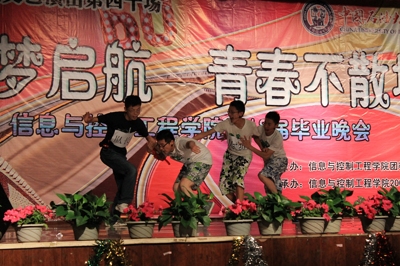 晚会在毕业生纪念视频中缓缓拉开帷幕,主持人以新闻联播播报新闻的形式,播放了学院领导、辅导员们对毕业生们的美好祝福。开场节目由2009级各班班长联袂呈现,精彩的表演赢得了在场观众热烈的掌声。随后,电子2009-1班带来的《三国时代》,自动化2009-3班带来的《炒饼的故事》以及电子2009-3班的《致甲流》等节目以其诙谐的台词让观众不禁捧腹大笑;《风吹麦浪》、《红日》、《“自控”传奇》等歌舞表演也给观众们带来一场视听上的盛宴;电子2009-2班的《非“雷”勿扰》和自动化2009-2班的相声表演更是获得老师观众的一致好评。此外,还有辅导员老师献唱的歌曲,小提琴独奏等多个节目,都赢得了观众阵阵掌声。最后,2009级毕业晚会在大合唱《相亲相爱》中落下了帷幕。
