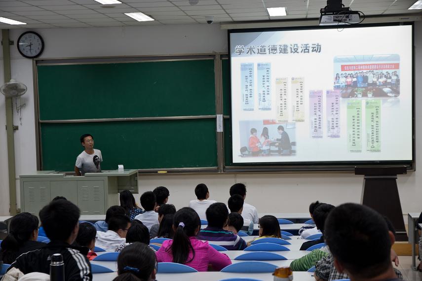 首先,对新生进行了《研究生手册》及学院奖学金制度相关知识的考试,本次考试内容涉及创新资助、违纪处理、结婚生育及宿舍管理等多项内容,学院2012级全体新生参加了本次考试。在考试结束后,学院研究生会六部门分别为新同学们展示了上一学年的相关活动情况,并进行了纳新宣讲活动。