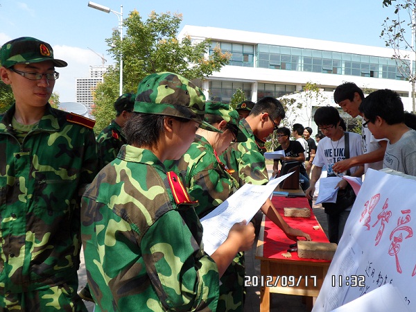 2012年9月17日,电气工程及其自动化10-4班在荟萃广场举办“理智爱国,理性保钓”团日活动。