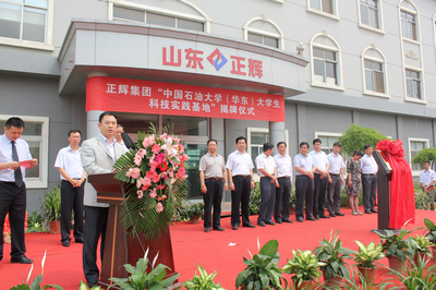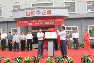 【记者:胡煜、张程】5月8日,石大和山东正辉集团共建大学生科技实践基地仪式在东营胜利工业园举行。东营区委常委戴昶昱、校团委副书记李永亮、信控学院党委书记方召杰、信控学院党委副书记付罡、我校挂职干部、利津县团委副书记李树珍等出席了揭牌仪式。
