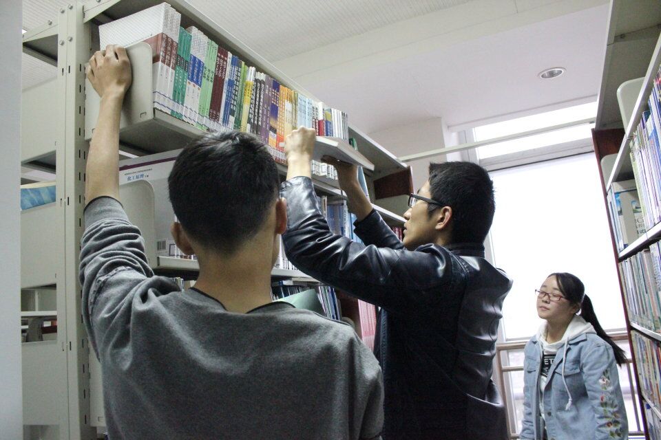为了给全校师生营造良好的借阅环境,3月28日上午,测控1603班全体学生在图书馆三楼义务整理书籍。