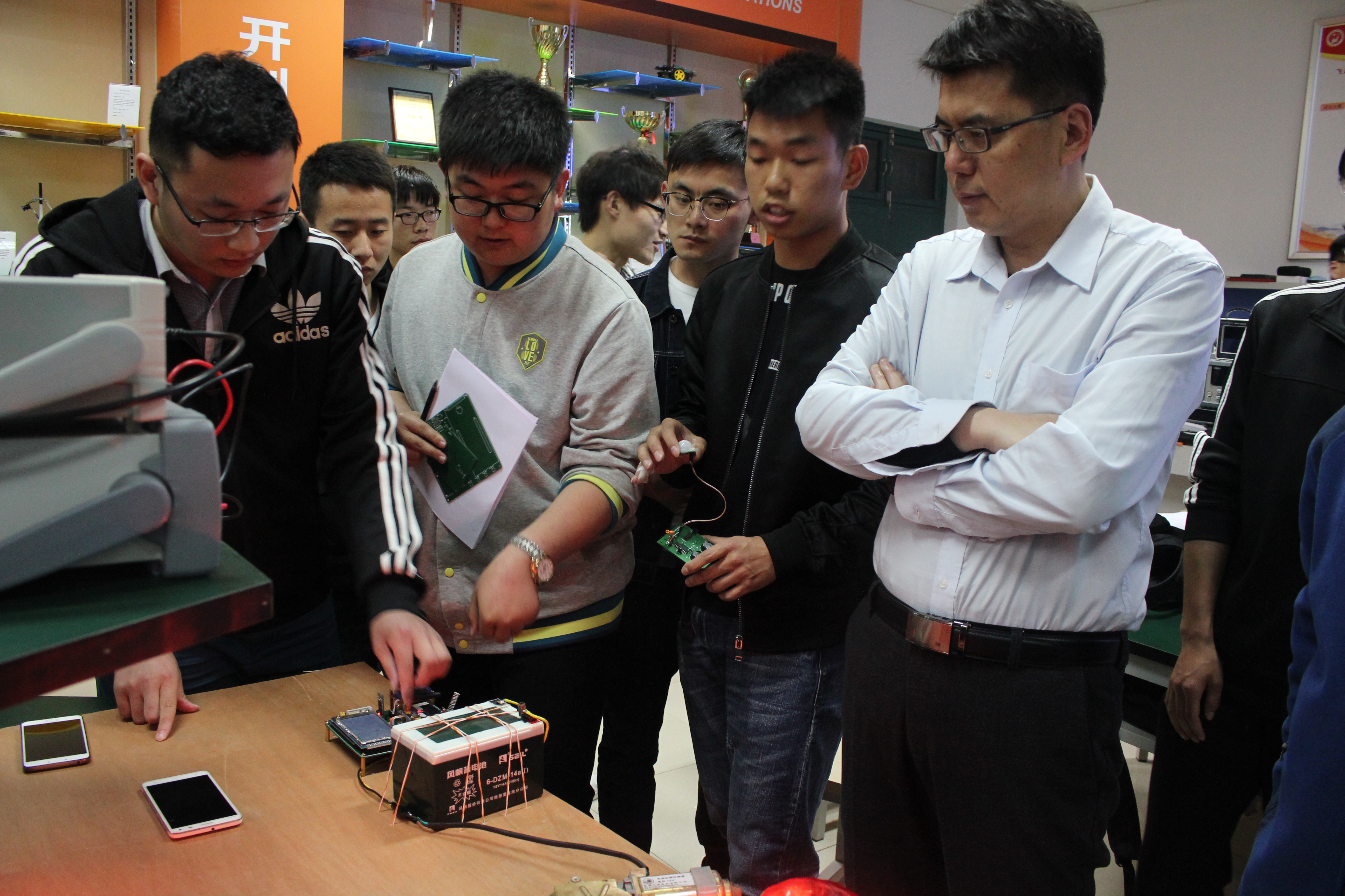 本次大创项目结题验收答辩工作首次在创新实验室进行,通过现场作品测试,着重考核项目研究具体工作量和作品完成度。阶段检查工作在传统检查方式的基础上,加大专家问辩环节的比重,重点加强项目研究进度督促和学生自主思考意思、主动意识的引导。经过答辩,评委老师对项目进行了相应指导,2015年立项部分校级大创项目结题答辩结果将后续进行公布。