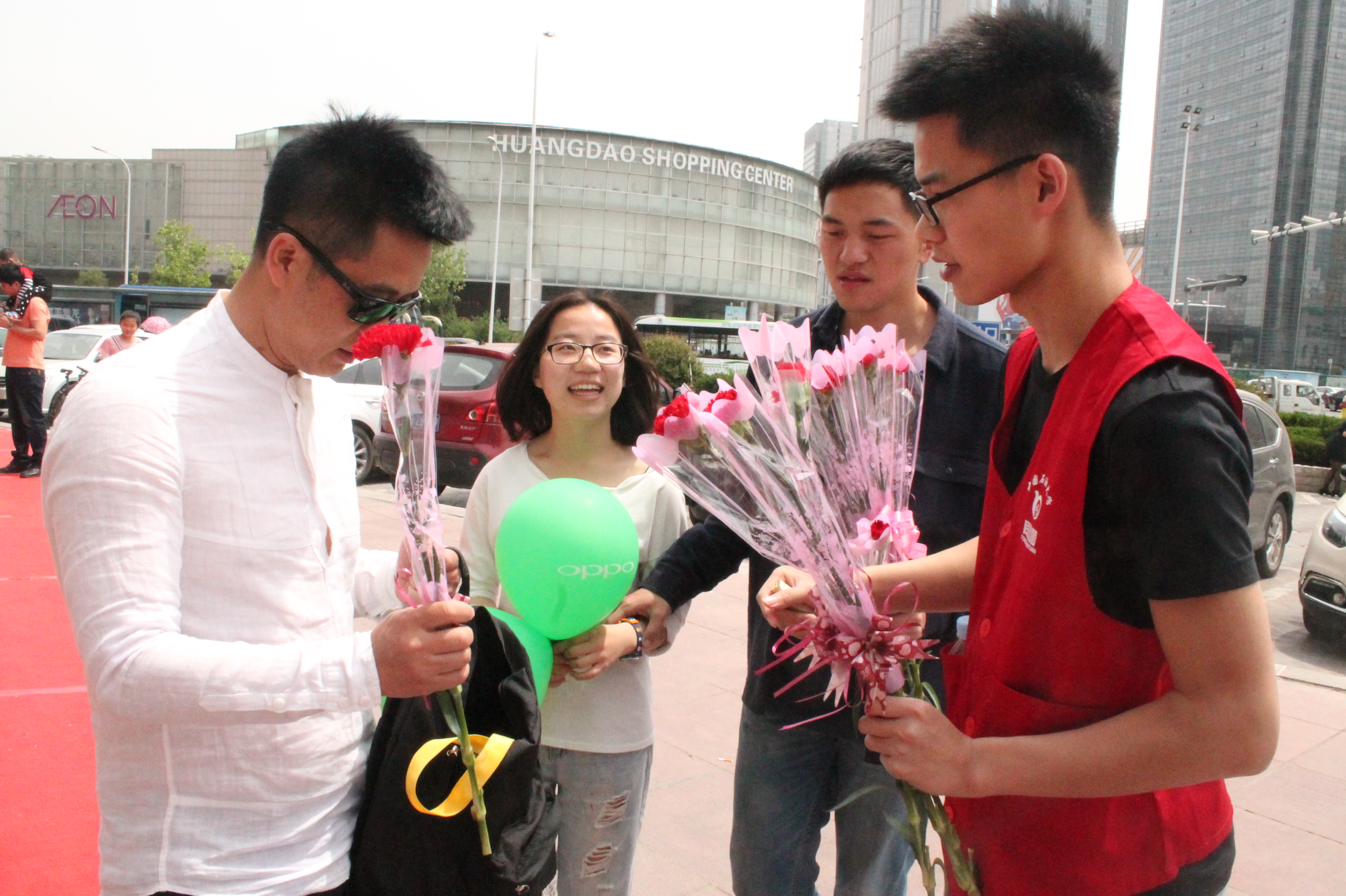 为给山区孩子筹资善款,为暑期支教活动做准备,5月14日母亲节当日,我院同心圆青年志愿者协会麦子、蜗牛、雁翎三支支教队成员前往家佳源等商场门口及周边进行康乃馨义卖活动。