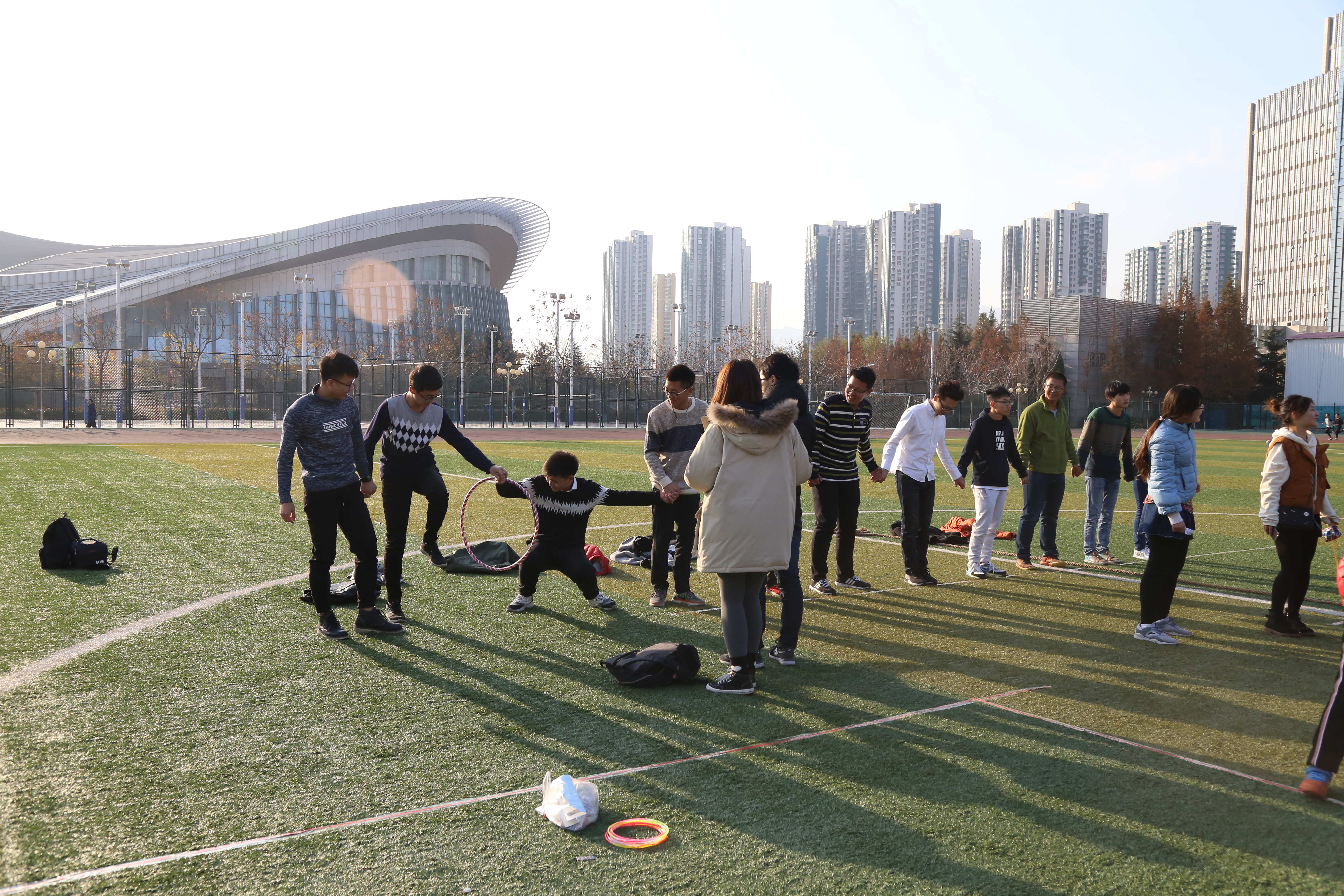 为加强大学生们之间的交流,增强其自信心和上进心,不断认识和开发自身,11月26日,大学生易信发展中心在田径场举办了趣味运动会。