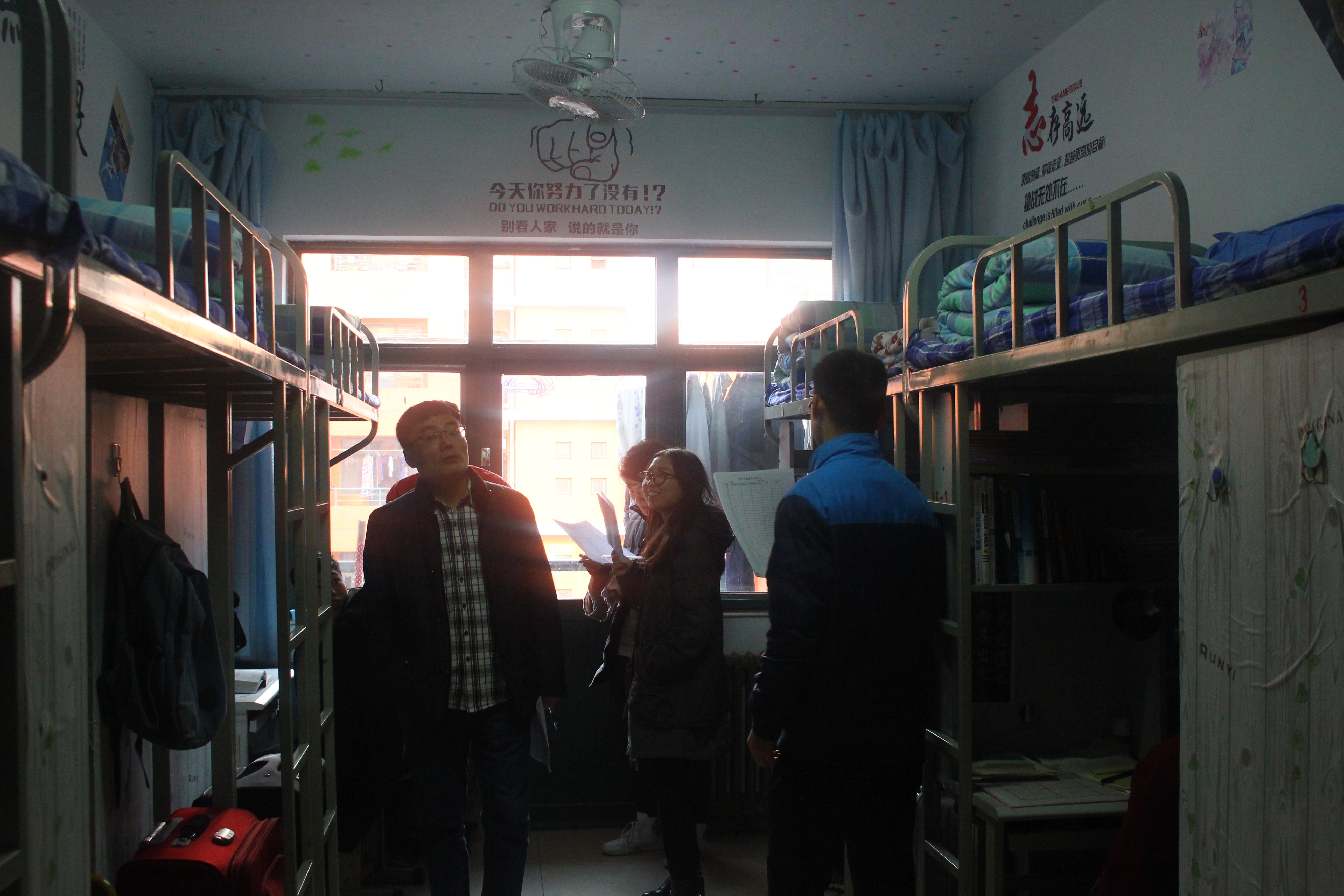 12月17日上午,我院宿舍文化节评选活动在我院各学生宿舍展开。我院2017级辅导员赵小明、信控学院学生会主席闫娜及其他学生会成员作为评委,参加评选打分。