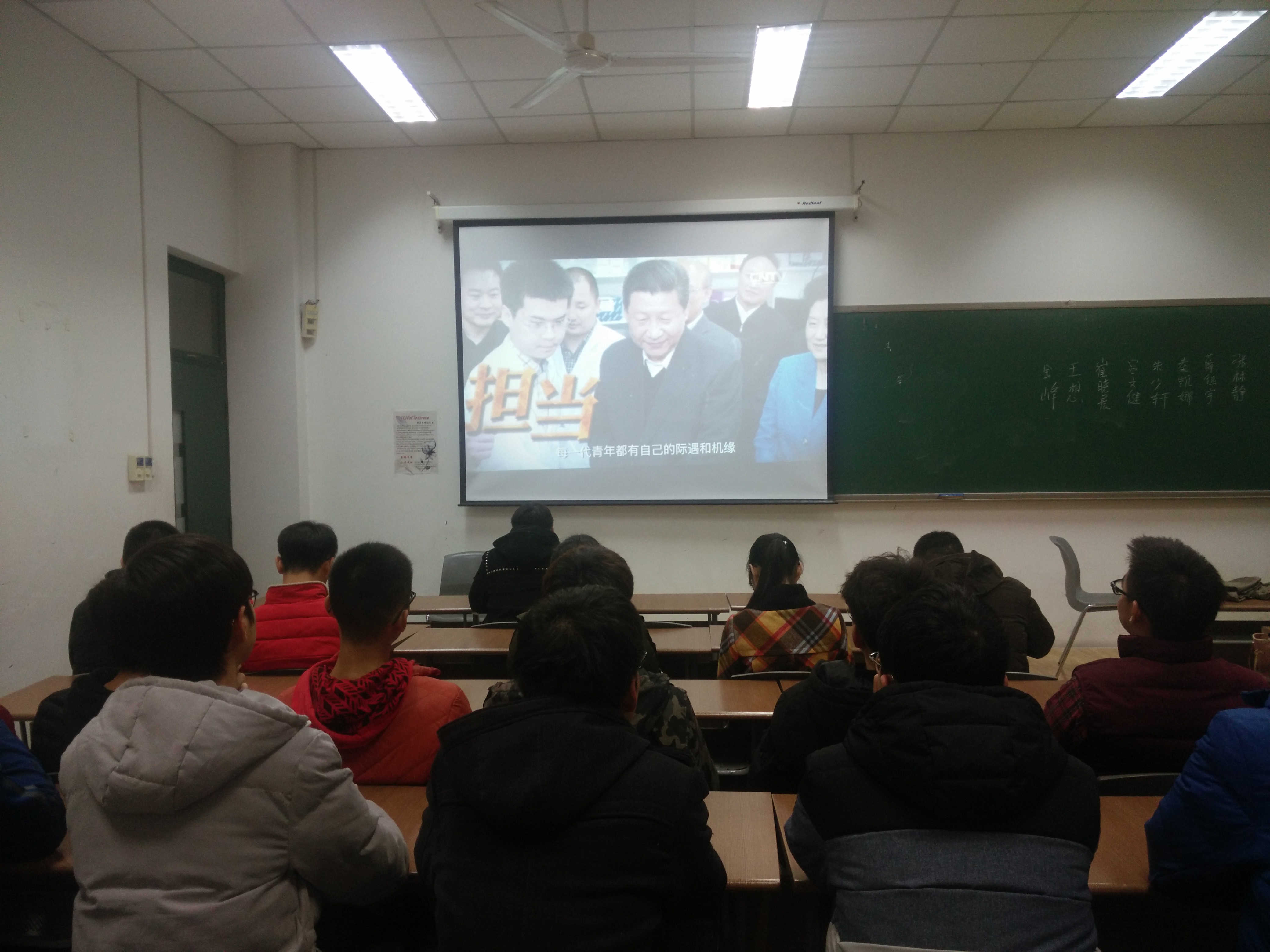 组织生活会由团支书秦凯娜主持,27名团员通过主题团日的形式共同学习了党的十九大报告和修订后的党章以及新华社长篇通讯《习近平:新时代的领路人》,观看了视频《青年榜样习近平》和《不忘初心 继续前进》专题宣传片,并轮流发表自己的学习感悟。其后,团支部团员根据自身情况对学习成绩,班内活动的参与情况,对班级的贡献等方面陈述进行个人自评。团员陈述完毕,由团支书秦凯娜组织进行民主投票,按照评选标准和要求,最终有八名同学评为“优秀”,十九名同学评为“合格”。