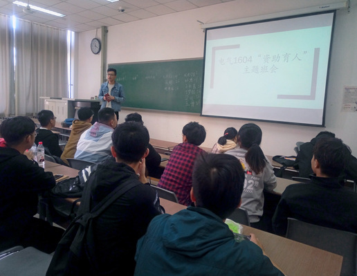 10月27日上午,电气1604班于南堂311室召开了“资助育人”主题班会暨2017-2018年度专项奖学金及个人称号评比。此次班会由班长王秋盛及团支书杨睿涵主持,1604班全体学生参与。