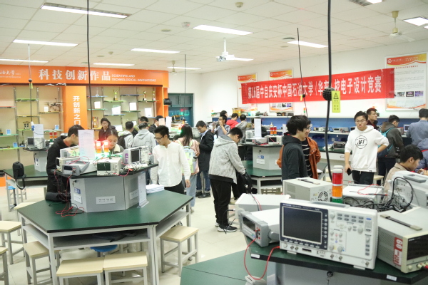 本次电子设计大赛的题目分别由李超、薛焕昇、吴鸿声、王远泽四位同学命题,并由王远泽、薛焕昇、吴鸿声、张志涛、俞心怡、付发六位同学担任评委验收每个队伍的设计报告与实物,然后进行现场打分。活动开始时,每个队伍有序的在教室门外排队,进行验收的队伍按照评委的要求反复调试自己的作品,以求得更完美的波形,更完美的展示。验收过程中,每个评委不仅仔细评判作品质量,更对每个队伍对作品的设计,调试等方面提出建议,并实地进行指导,让同学们在展示的过程中获得进步。yl23411集团电子设计大赛已经成功举办了十五届,是信控学院科技协会的一大特色比赛,每年都能吸引大量的信控学院和其他学院的学生来参赛,第十届电子设计竞赛共吸引两百支来自不同专业不同年级的队伍来参赛,参赛人数接近人。