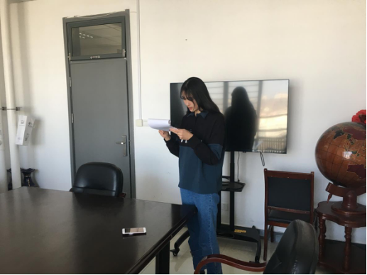 丁安敏宣读《转正申请书》(摄影:许辰航)