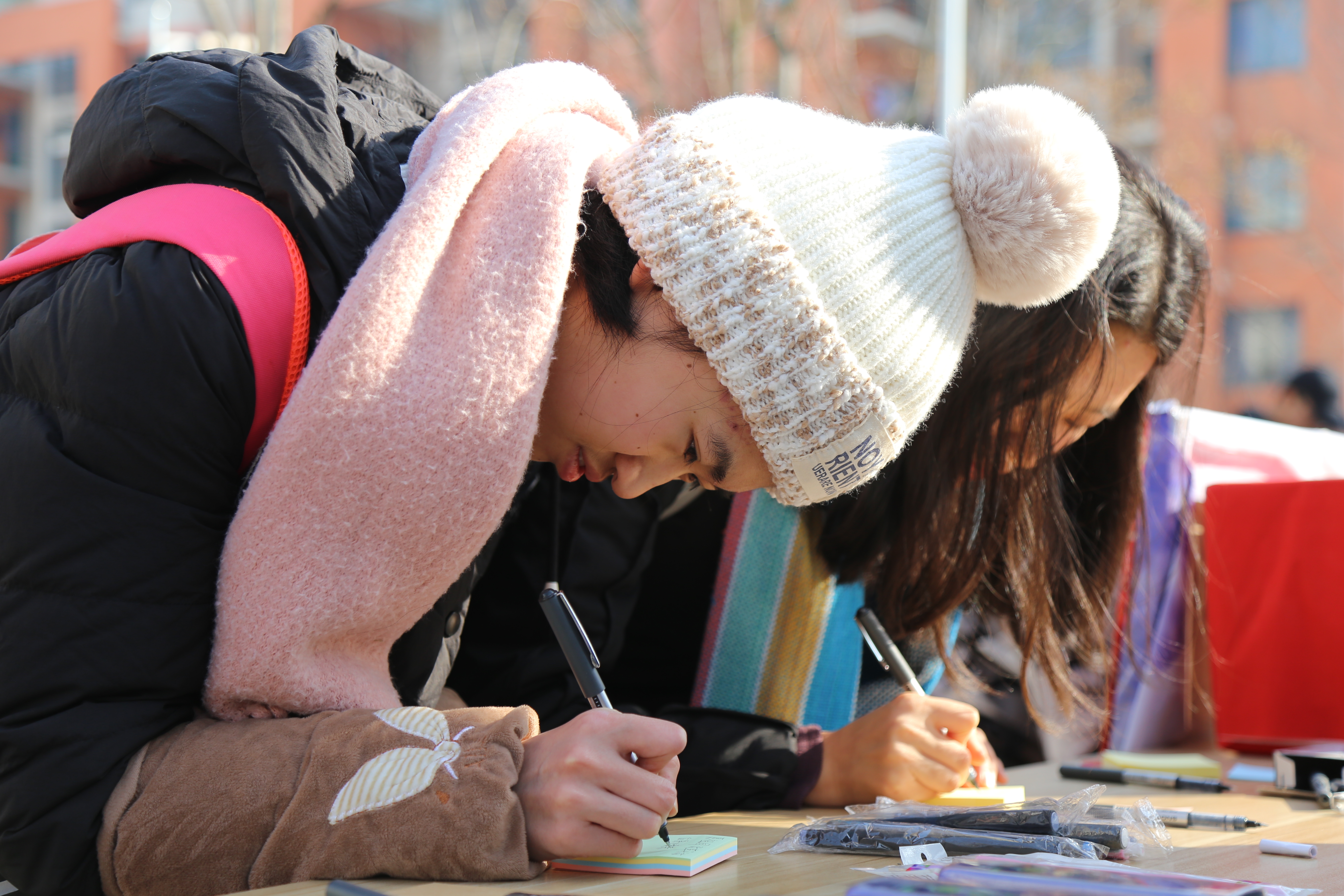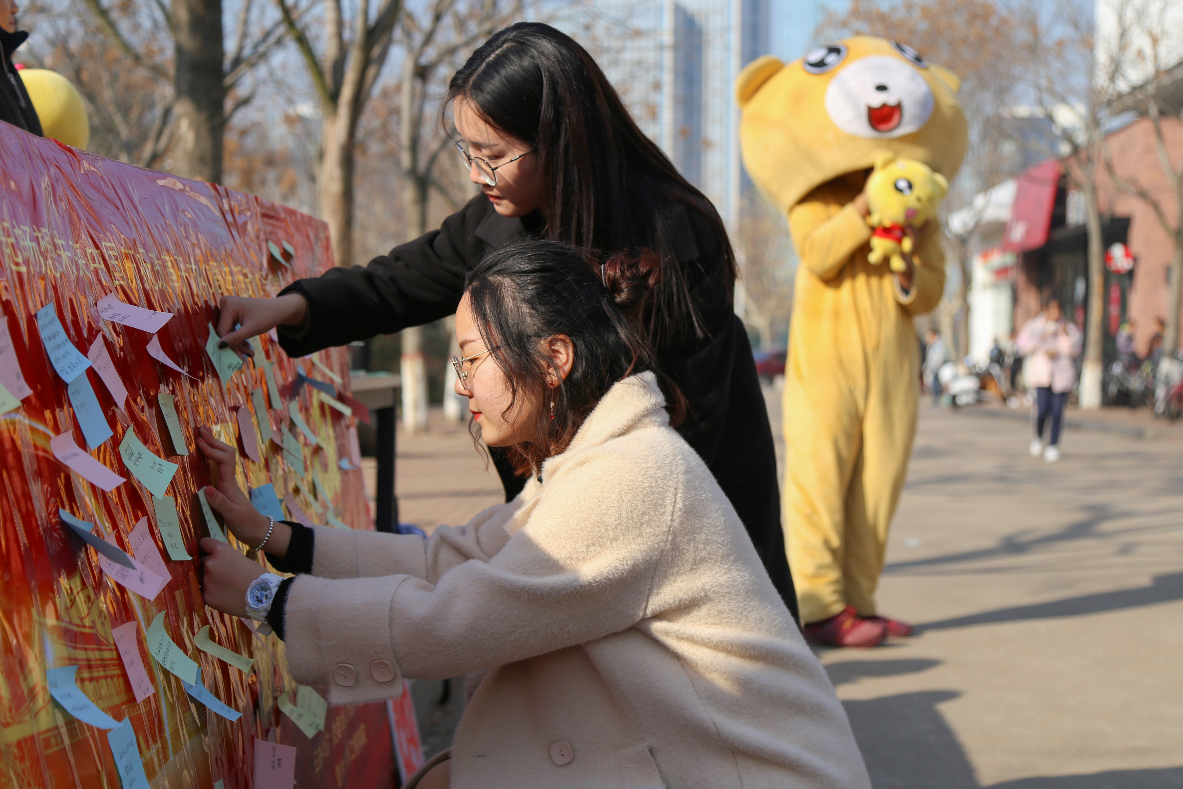 学生将祝福贴在展板上 张冕桐摄影