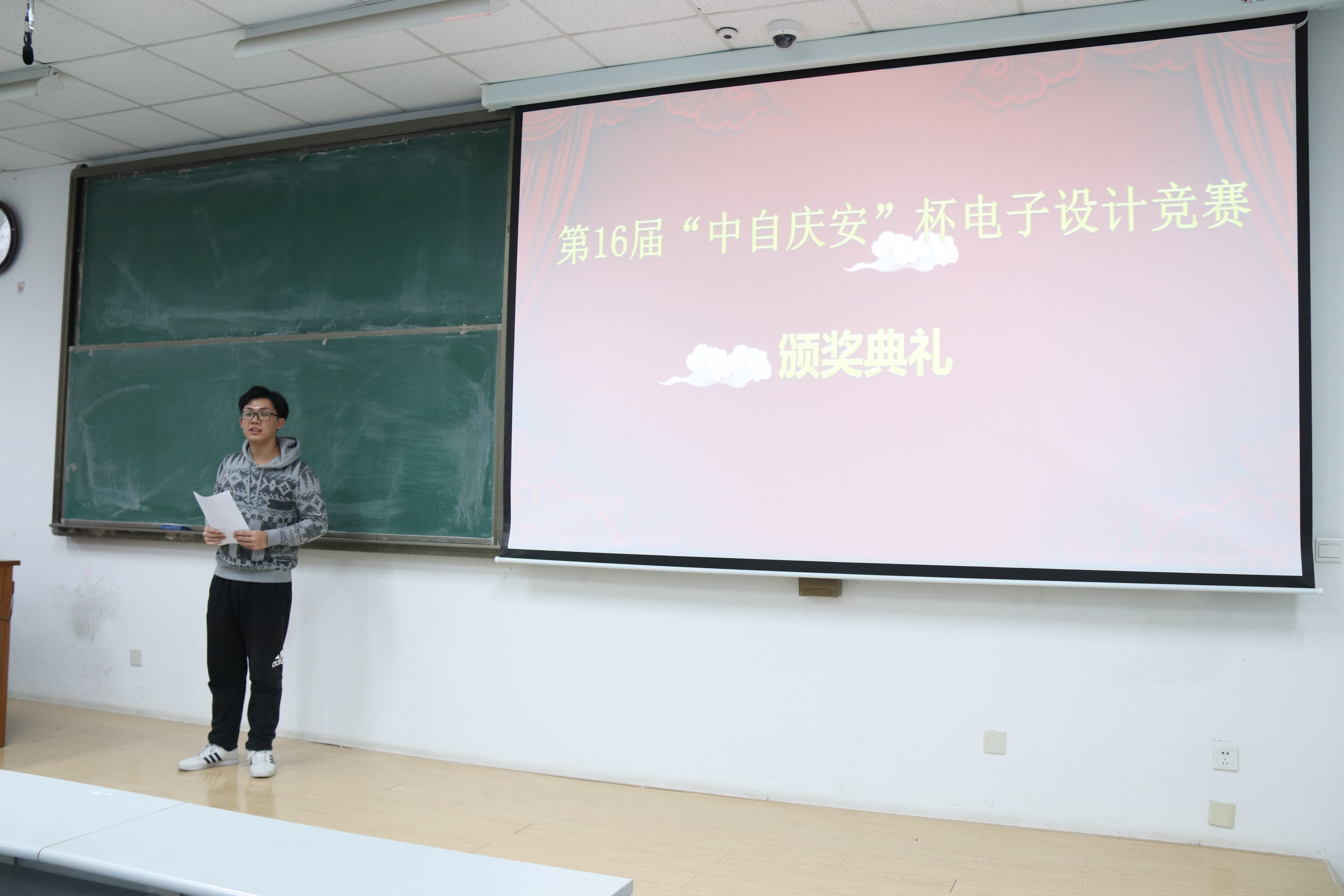 12月25日,由共青团yl23411集团信息与控制工程学院委员会主办,信控学院科技协会承办的第16届“中自安庆”杯电子设计竞赛颁奖典礼在南教楼119教室举行,信控学院电子设计协会会长王远泽担任活动主持人