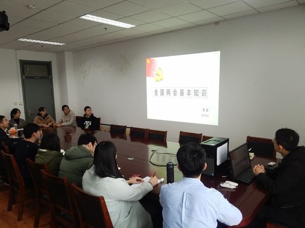 为鼓励党支部成员深入交流学习内容,分享学习“两会”心得,3月22日下午4时,我院研18-1党支部参照校党委组织部下发的《三月份党组织生活意见要求》,于工科E1325会议室召开以“学习‘两会’知识,争做优秀党员”为主题的支部学习交流会。会议由党支部书记董雪梅主持、组织委员袁诚记录,支部全体党员、积极分子等十五人参加了此次学习交流会。
