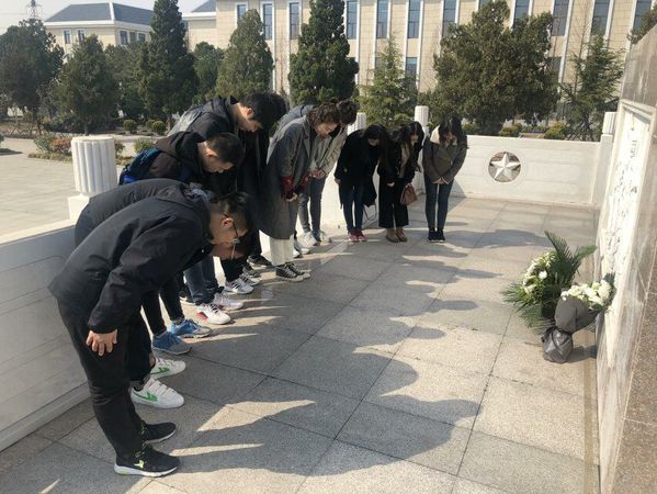 早上7点45分,所有参加活动的同学在校北门集合,乘公交车前往烈士陵园。本次活动分为参观学习和缅怀两部分。首先,大家进入烈士纪念馆参观学习,通过瞻仰烈士们的画像、名录以及遗物,让大家了解革命战士为保家卫国而书写的一段段可歌可泣的悲壮历史。随后全体成员站立在烈士墓碑前进行献花仪式,低吟悼词来表达心中那份对先烈的沉重情感,鞠躬并默哀,以示对先烈们的缅怀和敬意。参观结束后,同学们之间相互交流此次活动的感受,团支书何家宇表示:“长使英雄泪满襟,你们用无悔铸就了新中国的钢铁长城。生命的意义在于奉献,生命更崇高的意义在于为人民付出自己的一切乃至生命。我们将不忘烈士抛忠骨,永远铭记实现民族复兴的中国梦。