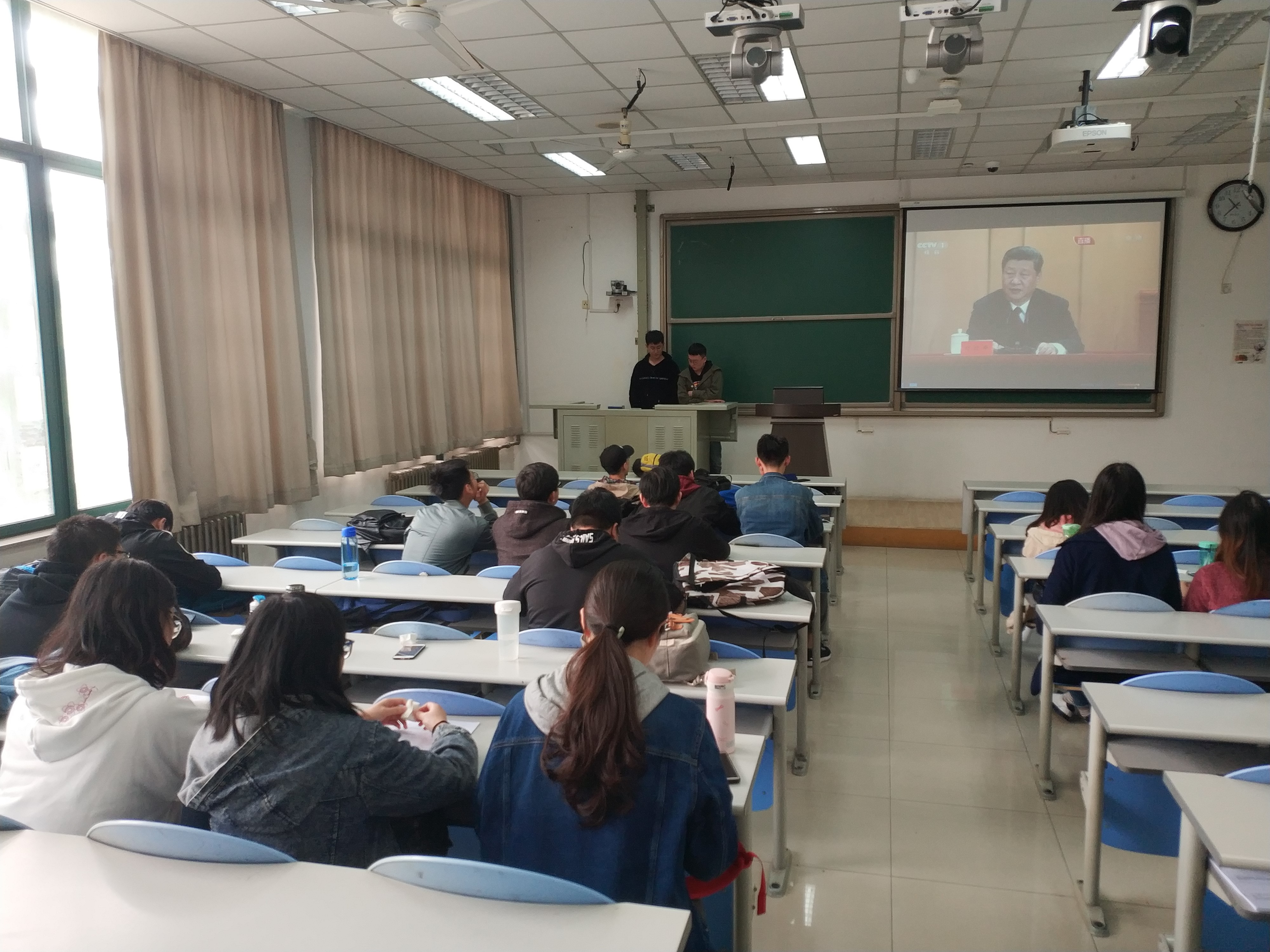 4月30日上午,纪念五四运动100周年大会在人民大会堂举行。自动化1603班组织全体学生观看大会直播,认真聆听了习近平总书记在大会上的重要讲话。