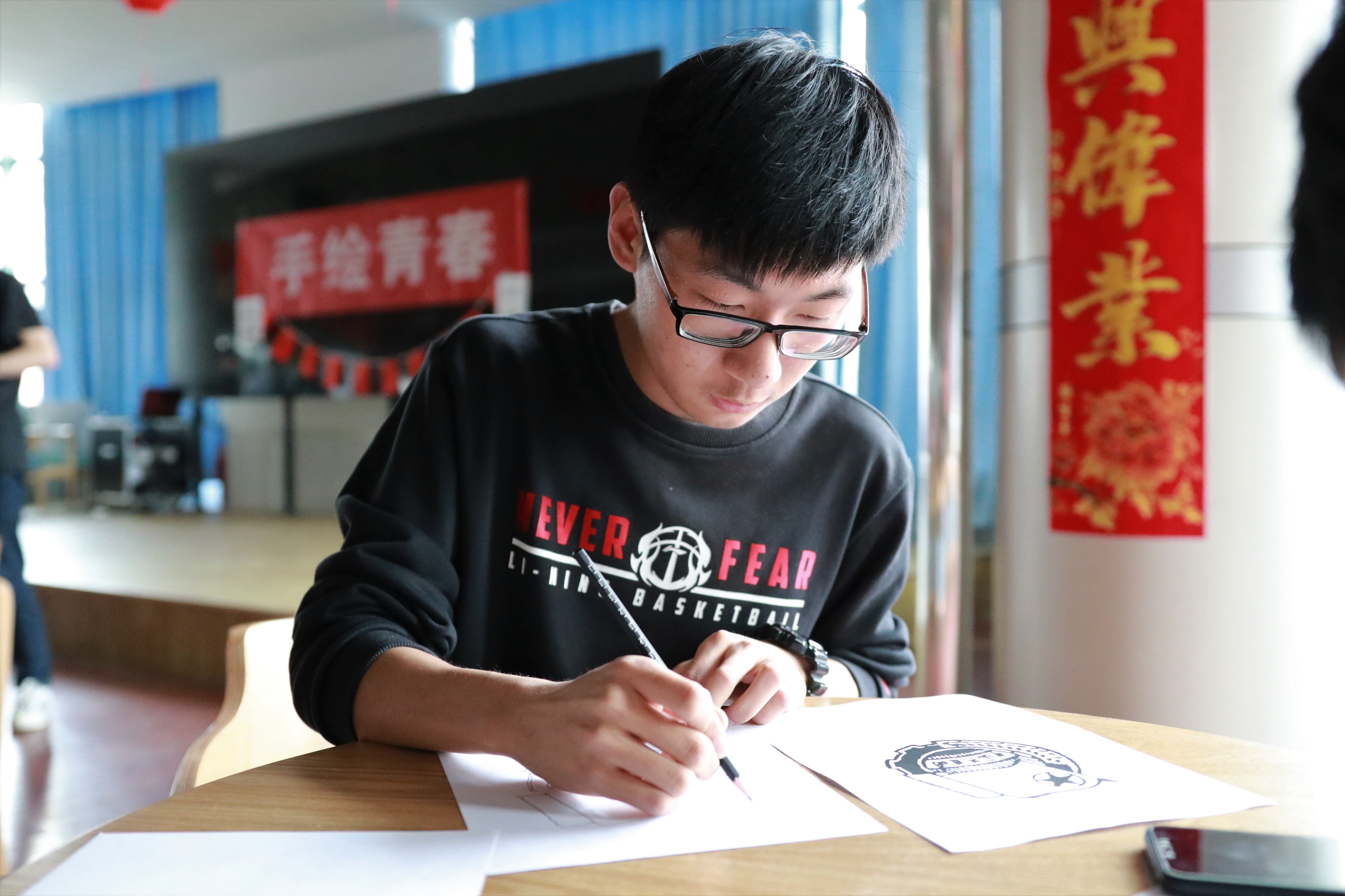 学生认真绘图 张祥煜摄影