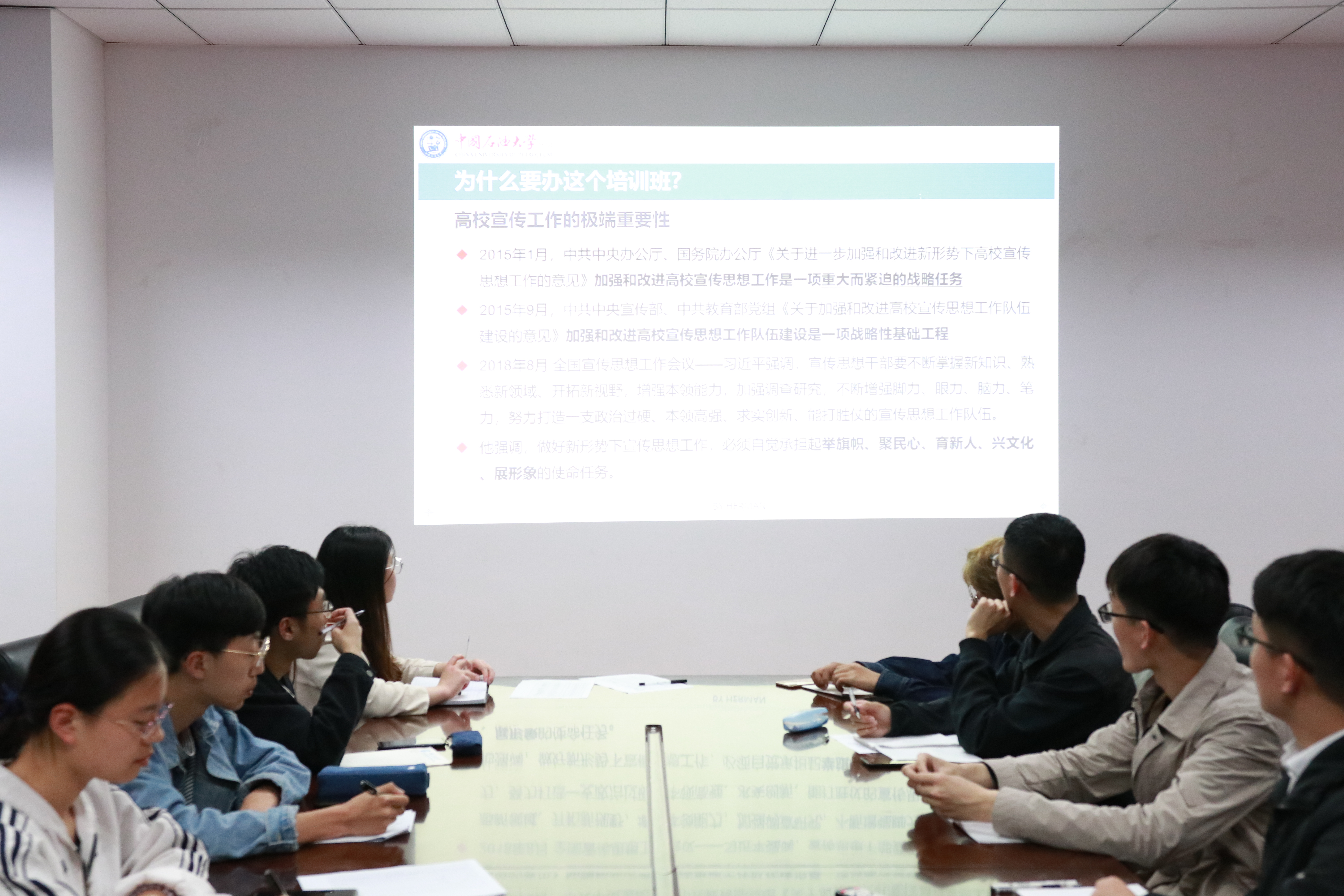 此次培训旨在强化新形势下学生宣传工作队伍要求,提升宣传工作者思想素养,培养宣传工作者的执行力与表达力。