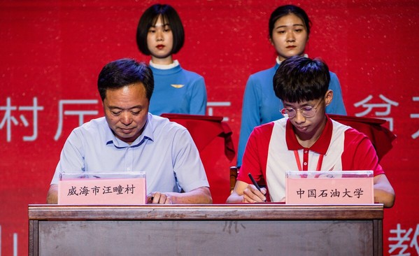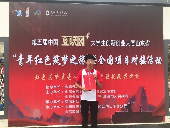 6月18日上午,第五届中国互联网+大学生创新创业大赛山东省“青年红色筑梦之旅”暨全国项目对接活动在威海职业学院举办。此次活动由山东省教育厅、山东省农村厅、山东省扶贫开发办公室和威海市人民政府主办,来自全国17个省份、183所高校的230余支大学生创新创业团队和指导教师,以及来自省内的企业负责人和乡镇村农户代表,企业家、投资机构人士、媒体代表、威海职业学院师生共4000余人参加活动。我院“未来说”学生团队的“科创兴农教育‘从娃娃抓起'”项目受邀参加活动,团队成员孟维琦作为全国八个代表中之一上台签约。