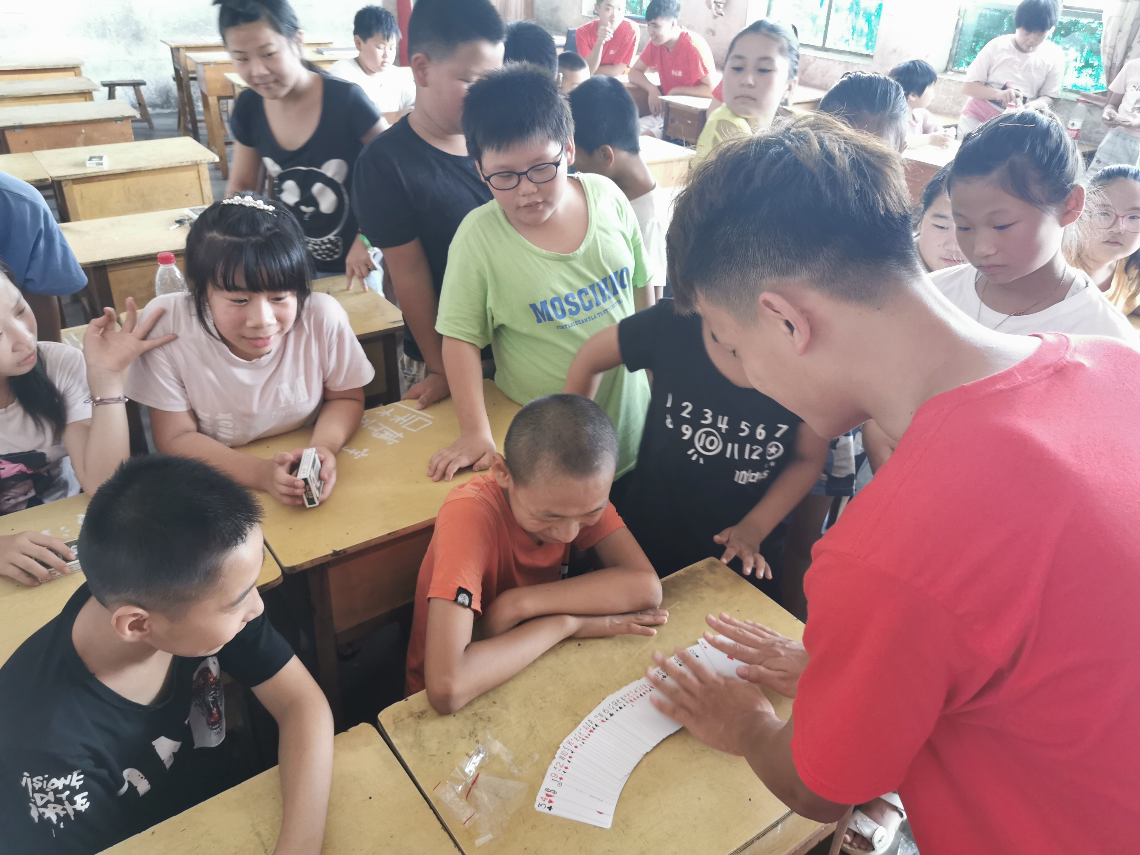 魔术一直是孩子们最原始的憧憬与渴望,支教队员刘宏良抓住这一特点,仔细打磨,认真备课,在8月2日上午9时于吴街小学展开令人深刻的一堂课。