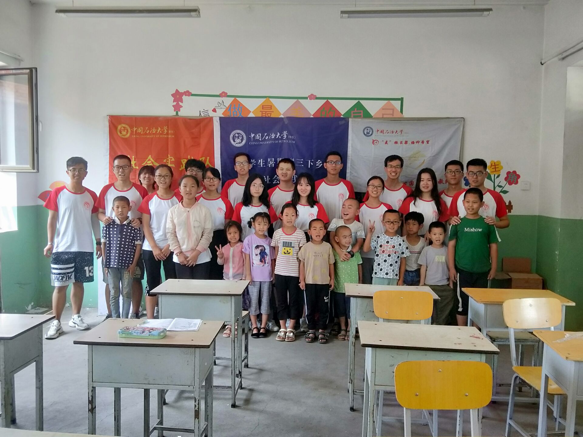 八月二日上午,yl23411集团同心圆暑期爱心助学麦子支教队全体成员与固贤乡中心小学校长关永平在教学楼一楼教师办公室举行了正式的见面会,随后支教队的小老师们与本次固贤乡中心小学参与暑期支教课程的同学们会面,并在教学楼一楼一年级教室举行了开班仪式。