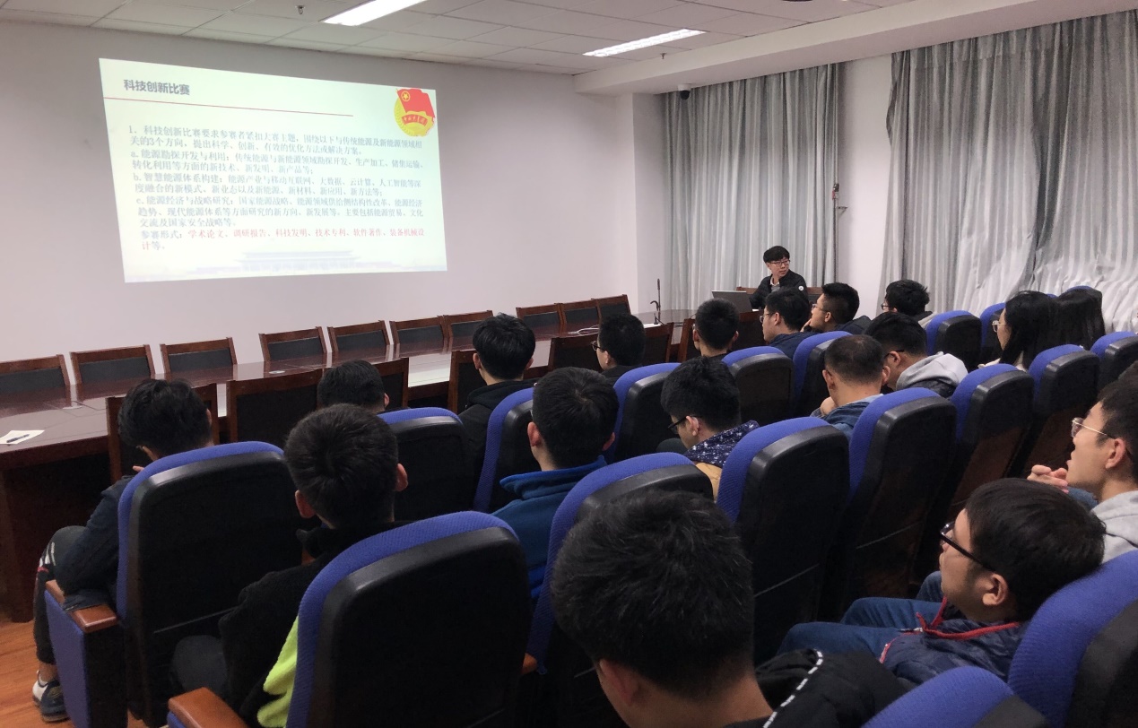 为积极响应国家“大众创业、万众创新”的号召,提高同学们创新素质和创业能力,12月10日20:30,我院研19-1团支部于工科E1325举办“青春筑梦新时代,科创报国赢未来”创新创业宣讲会,本次活动由研19-1团支部书记郭敬宇主持,团支部全体团员参与活动。