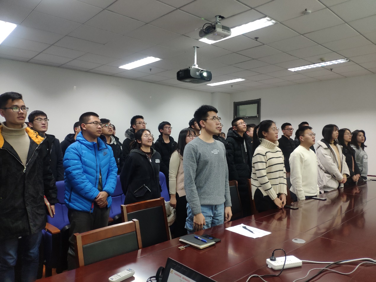 本次活动主要分三个环节。首先由支部书记向大家介绍微纪录片《见证初心和使命的“十一书”》的由来与背景。《“十一书”》中总共选取了11位共产党人的感人素材,展示了共产党人用生命和鲜血铸就的信念与忠诚、永远坚守的初心和使命。接下来高一鸣同志带领大家观看了《见证初心和使命的“十一书”》中“贺页朵的‘宣誓书’、陆德明的‘行军书’、傅烈的‘绝命书’”片段。观看视频完毕后党支书就视频内容设置了一系列小问题,同学们争先恐后的回答,现场气氛一片热烈。积极分子简浩文说道:“革命先烈事迹,给我们带来了精神上的洗礼和心灵上的震撼,不仅为固本培元、凝心铸魂提供了丰厚养料,更为实现中华民族伟大复兴中国梦提供了强大动力。”活动的第二环节是学习了解 “一二·九运动”的历史,由闫学哲同学简要的介绍了“一二·九运动”的内容,并观看了《大抗战》“一二·九运动”视频,闫学哲同学向全体同学作出了号召:“历史因铭记而永恒,精神因传承而不灭。我们要树爱国之心,立报国之志!最后是由孙海洋同学带领支部全员进行宣誓,本次爱国主义教育主题党日活动在大家激昂澎湃的宣誓声中落下帷幕。