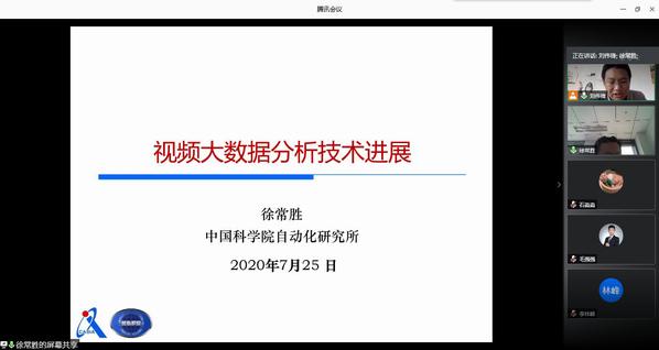 7月25日上午,中国科学院自动化研究所模式识别国家重点实验室研究员徐常胜应邀来我院作报告,学院副院长刘伟锋教授主持会议,本次报告会的主要内容为《视频大数据分析技术进展分析》,以腾讯会议的方式线上展开,相关学科研究生参加。