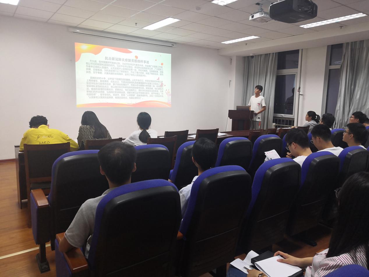 为了学习全国抗击新冠肺炎疫情英模榜样事迹,大力弘扬爱国主义精神,激励党员同志守初心、担使命,把爱国情、报国志融入伟大奋斗中,我院测控专业第二党支部于9月27日在工科E1325召开“英雄的人民、人民的英雄”主题党日活动与党员述责答辩。测控专业第二党支部全体党员参加此次活动,学院团委书记姜飞老师列席。