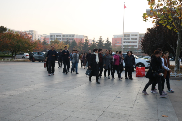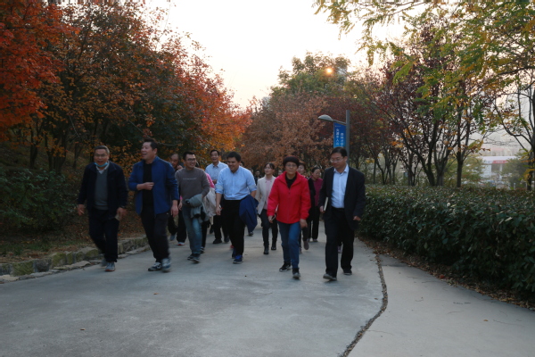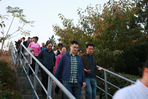 学院教职工于16:00在创造太阳雕塑前集合,合影留念后,向小黄山出发。伴着落日的余晖,教师们结伴而行,观赏校园景色,并畅谈工作、生活中的趣事。近年来,学院连续举办健步行活动,引导老师们工作之余参与锻炼、愉悦身心,并希望通过健步行活动,增进学院教职工间的交流,促使教职工以更好的精神风貌投入教学科研等各项工作中,形成学院“家文化”。