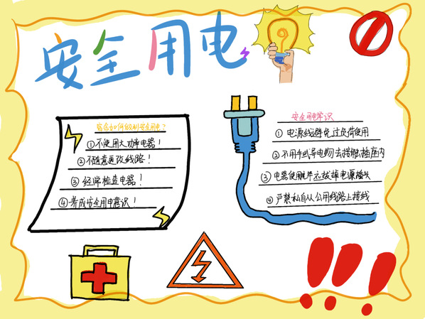 收获:我觉得此次最大的收获就是,在画的过程中要搜集整理素材,在这个整理的过程中我了解到了很多我以前都没听说过、接触过的用电安全小技巧以及发生事故后的应对措施,从而更加生动有力地提高了安全意识。