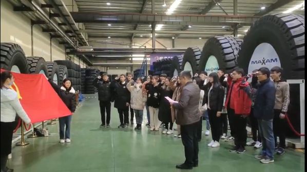 在特种轮胎制造工厂,我院新发展党员于“巨型工程子午胎”前,在学院党委副书记苏兴的带领下进行了庄严宣誓。此次宣誓大大激励了党员们奋发拼搏的决心,坚定了为共产主义事业而奋斗终身的信念。