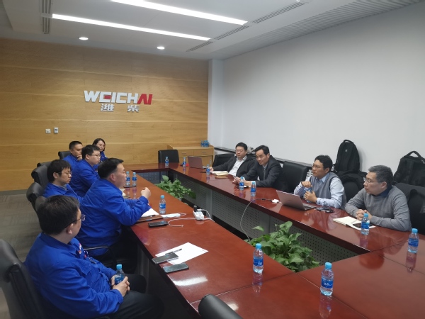 抵达潍柴动力有限公司后,公司人力资源部部长魏兆宗介绍了潍柴集团的发展现状和人才招聘状况,刘伟锋重点介绍了我院的研究方向和合作规划,于连栋重点了解了潍柴的人才培育需求,并就博士后教师入站和专业型博士入校培养等方面与企业进行了深入的探讨。交流结束后,学院一行参观了公司的展厅,对潍柴集团的成长历程和发展前景有了更全面的认识。