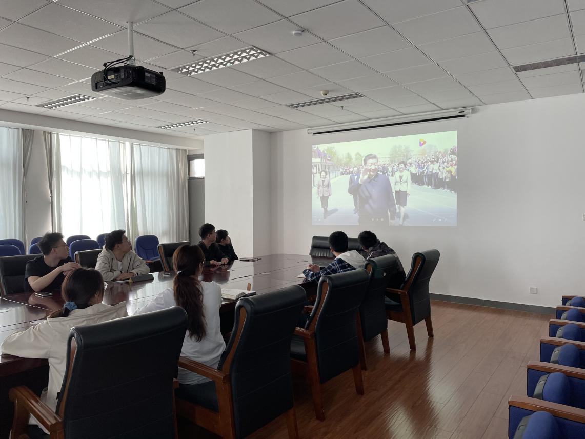 支部成员认真观看总书记清华行视频(摄影:蔡玉颖)