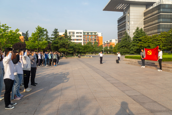 为隆重庆祝中国共产党成立100周年,让革命薪火代代传承,为社会主义现代化建设贡献青春力量,控制学院团委、学生党总支于2021年6月7日在国旗广场举行“青春向党•奋斗强国”主题教育暨2021年度毕业生党员离校教育活动。出席本次活动的有控制学院党委副书记、学生党总支书记苏兴,2019级辅导员曾菲,学院全体毕业生党员及新入党党员。