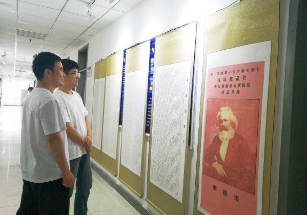 此次书画展受到众多书画爱好者的鼎力支持和帮助,书画爱好者们用饱满的爱国热情和精湛的艺术之笔,表达了他们爱党爱国的赤子之情。三十多幅书画作品丹青溢彩、翰墨飘香,将艺术与对党的赞美之情完美结合,笔墨流淌之间,充分体现了博大精深的传统文化与党的奋斗历程。师生们在作品前驻足观看,仔细端详作品的笔墨风格,体会作品的主题思想,激发了师生们的爱党爱国热情。
