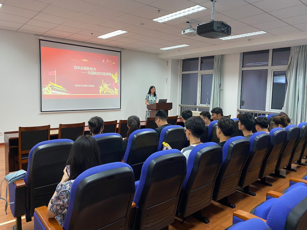 2021年是中国共产党百年华诞,百年征程波澜壮阔,百年初心历久弥坚。打赢脱贫攻坚战,是党对人民的庄严承诺。6月27日我院自动化专业第三党支部开展了“百年征程新起点-巩固脱贫攻坚成果”主题党日活动,支部书记韩欣给全体党员同志上了难忘的一节党课。