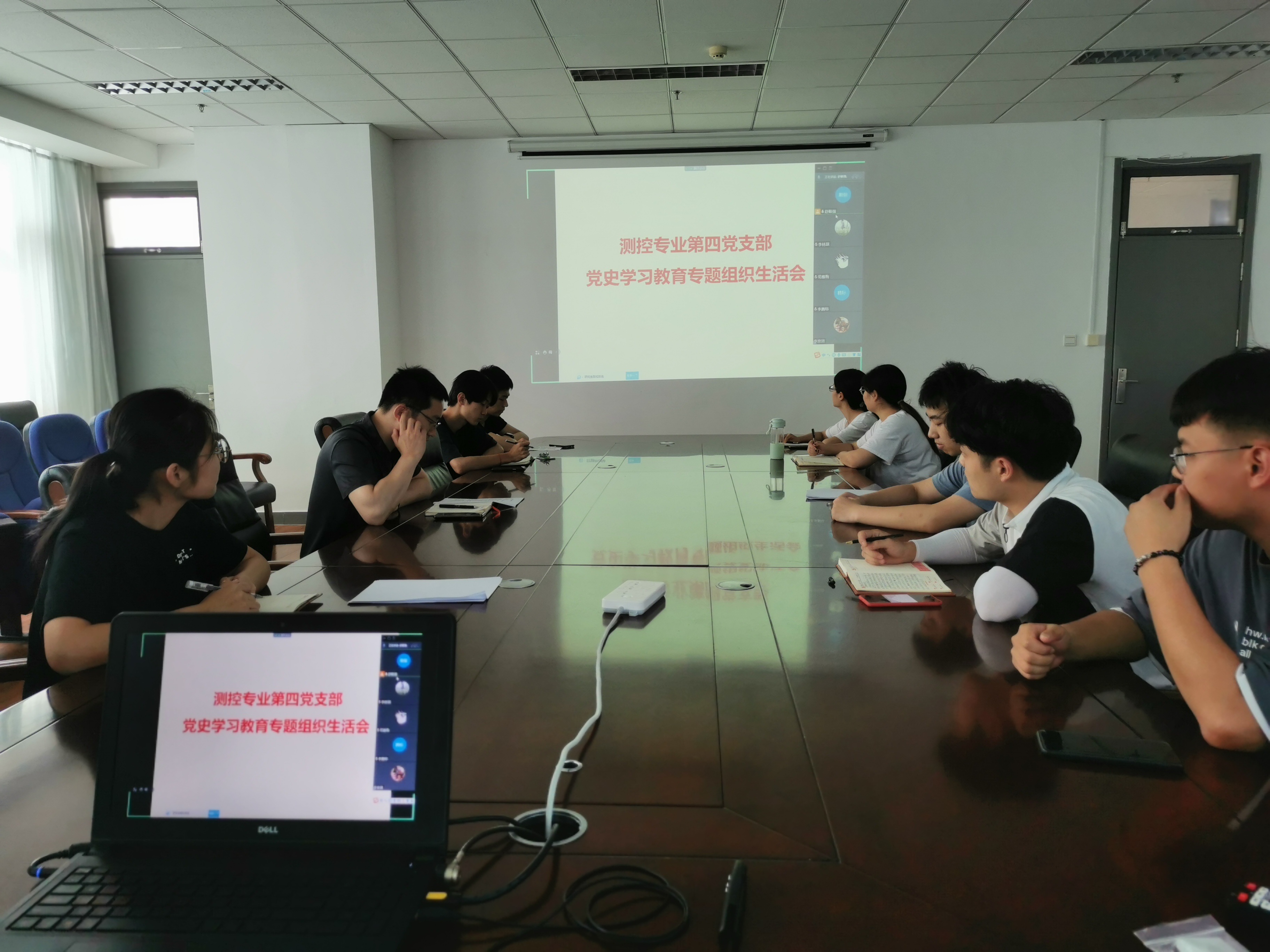 2021年7月21日,测控专业第四党支部在工科E1329开展了党史学习教育专题组织生活会,本次会议线上、线下同步进行。
