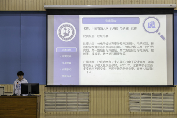 由控制科学与工程学院主办的2021年“中自庆安”杯yl23411集团第十九届电子设计竞赛开幕式于南教100教室举行。开幕式由控制科学与工程学院创新创业发展中心主席翁泽主持,团委书记姜飞、团委委员蒋仁福、2019级辅导员潘婷,电子设计协会副会长陈泽荣,实验室管理部部长代秋丽讲话。