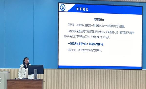 随后,辅导员曾菲强调应对考试要认真复习,坚决不能投机取巧,实施作弊行为,并再次强调诚信考试的重要性,要求全体同学签署诚信考试承诺书。然后,曾菲就“如何做好简历”展开主题培训,详细地介绍了简历制作的原则、布局和重点。她强调,做简历最重要的是要体现对岗位的热爱和自身的优势,而非简单罗列自己获得的奖项与荣誉称号,让与会学生受益匪浅。