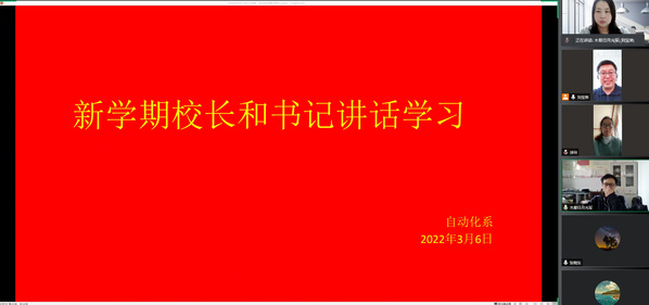 自动化系教师就学校新学期工作会议传达的精神踊跃发言,展开了热烈的讨论。教师们深刻认识到持续深入学习贯彻习近平新时代中国特色社会主义思想,切实提升基层党建工作水平,不断提高党建育人工作水平,不断提高教学质量和吸引力,完善课程思政育人体系,是教师教育工作之本,是2022年工作中的核心。