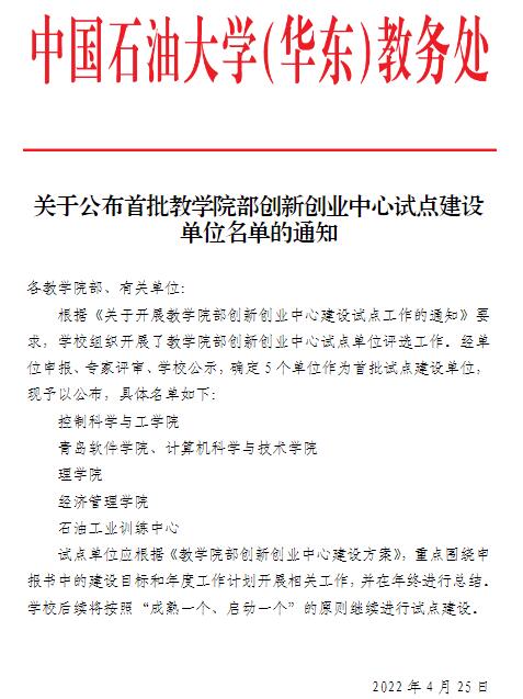 近日,学校公布首批教学院部创新创业中心(以下简称“双创中心”)建设试点单位,我院成功入选建设试点名单(全校共5个)。