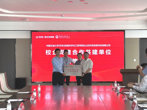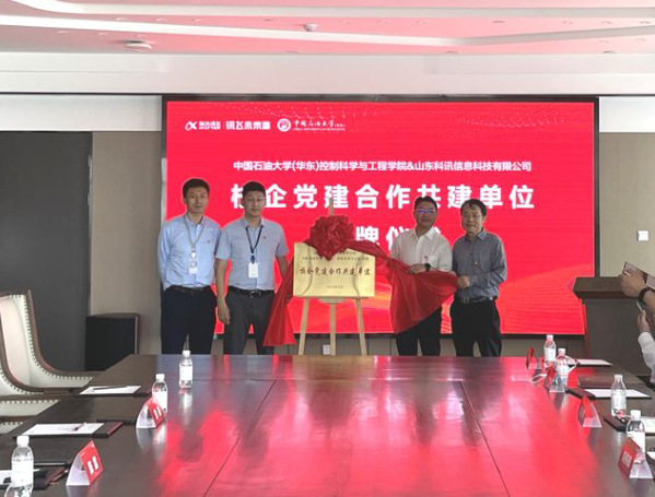 仪式上,双方举行盛大揭牌仪式。随后,举行了校企党建合作共建专题会谈。会上,双方就讯飞未来港、大企业联合创新中心、石油大学实践基地情况进行了介绍交流,进而围绕支部共建研讨会,围绕支部建设、活动开展和产教融合等问题进行深入探讨。通过座谈交流,双方达成共识,将以校企党建合作共建基地建设为契机,有效整合党建资源,激发党建活力,在人才引进和培养、实习基地建设、科研课题、产学研用等方面建立常态互动机制,不断发挥基层党组织的战斗堡垒作用,以党建引领高质量发展。