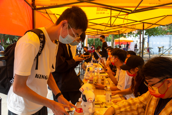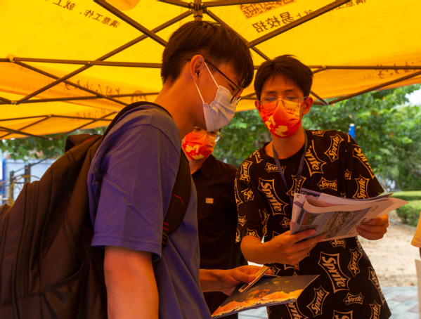 志愿者向新生介绍学院学生组织