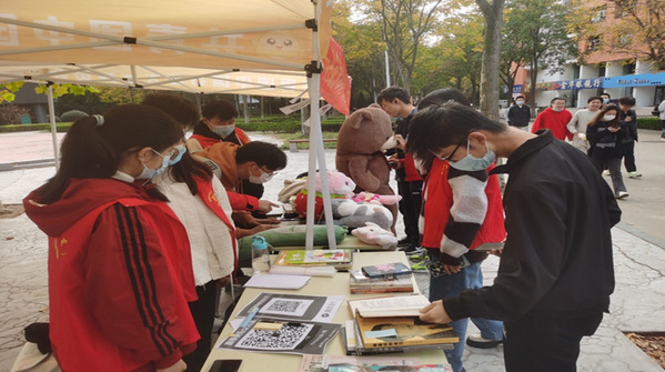 图二 志愿者们为同学讲解活动内容目的